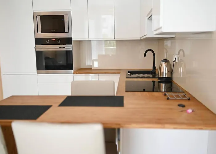Apartament jest wyposażony w takie udogodnienia, jak czajnik elektryczny, lodówkę i piekarnik, dzięki czemu Goście mogą samodzielnie przygotowywać posiłki. Od Apartments przy metro Kondratowicza do przystanku autobusowego Park Brodnowski 02 niedaleko.
